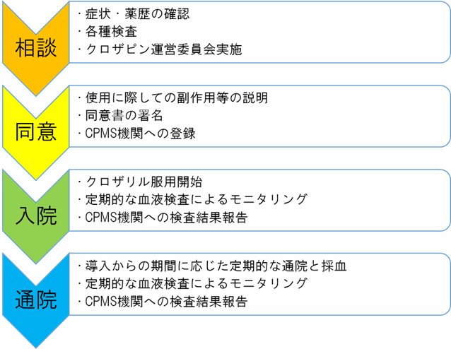 従来の薬物療法で十分な効果がない、あるいは副作用が出やすい、そういった統合失調症の方に対して、優れた効果を発揮します。クロザピン(商品名:クロザリル)の使用には、医師・薬剤師・看護師が研修を修了し、登録医療機関であることが条件です。